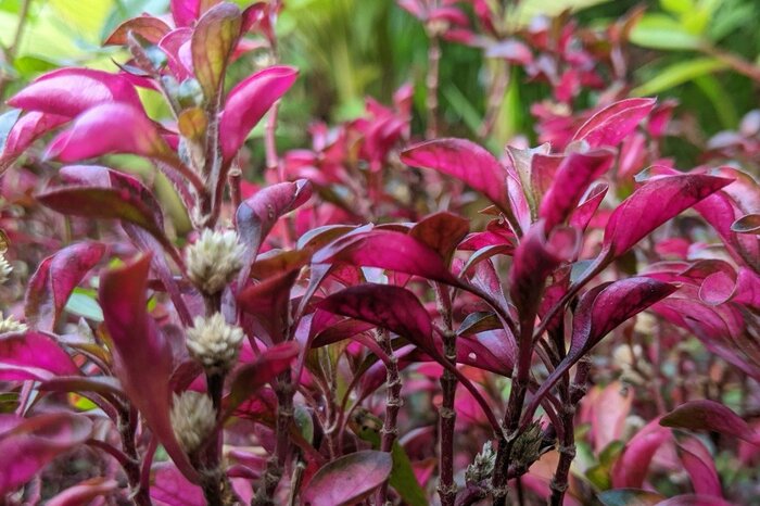 アルテルナンテラは美しい葉色が特徴の多年草。小花が可愛い千日小坊はアルテルナンテラの仲間です。カラーリーフプランツとして寄せ植えに使われることが多いのですが、可愛らしい小花も鑑賞に値します。