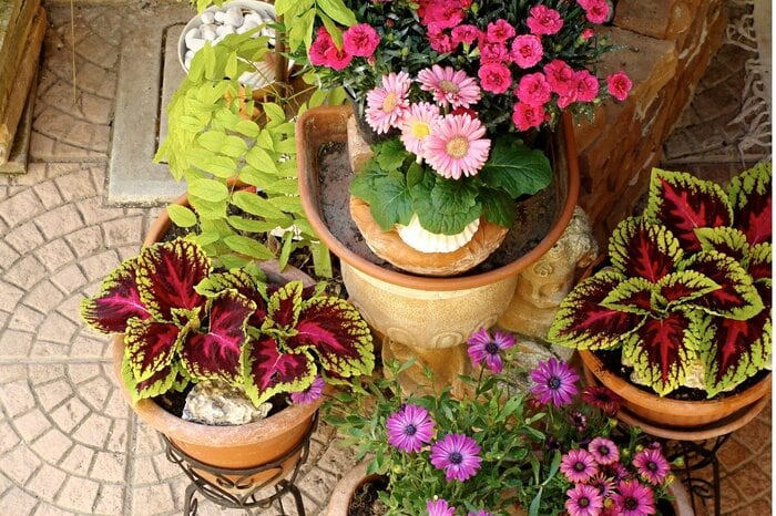 色やイメージが統一されていない植物や寄せ植えを一緒に置いてしまうと、まとまりのない雰囲気になるので、ひとつのスペースには、ひとつのテーマや雰囲気を決めておくようにしましょう。