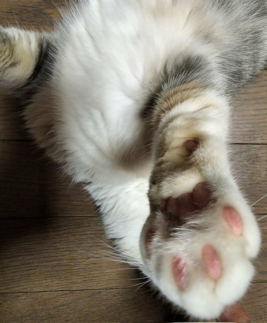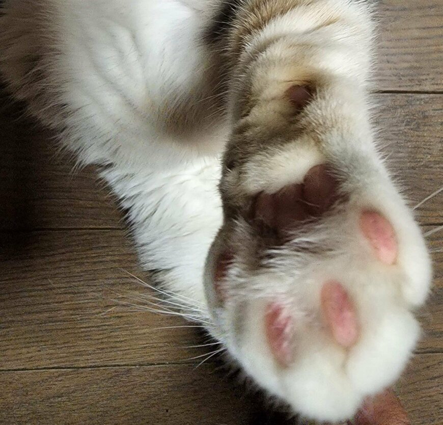 お顔を見せてはくれなかったメロンちゃんでしたが、代わりに可愛らしい肉球をバッチリ披露してくれています。ピンク色をしたモッチリ肉球は、思わずムニムニしたくなるほど魅力的ですね。