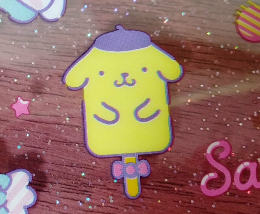 左中央部には、アイスキャンディーになった「ポムポムプリン」がいます。アイスの持ち手のリボンが愛らしいです。