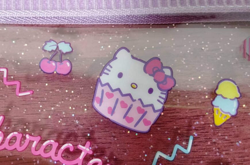 中央上部には、カップケーキになった「ハローキティ」がいます。
