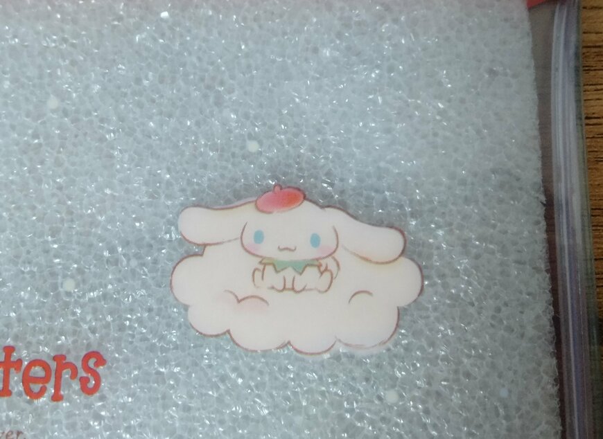 ポーチ右上には、「シナモロール」が雲の上に行儀よく座っています。
