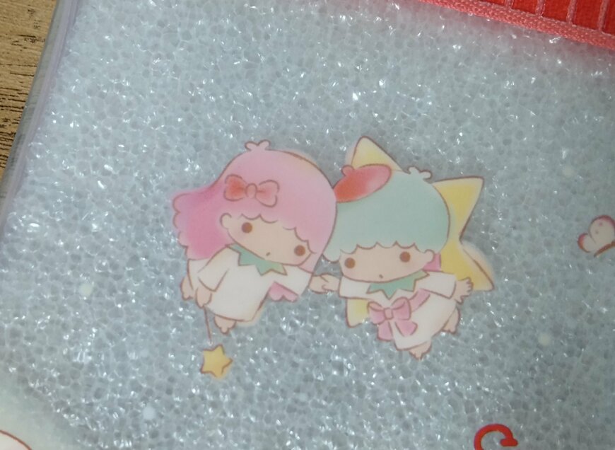 ポーチ左上では、『リトルツインスターズ』の「キキ」と「ララ」が手をつないでいます。