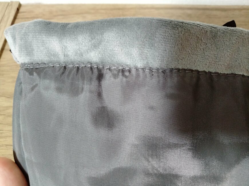 当アイテムは、作りもかなりしっかりとしています。まず、下の写真のように、キレイなベロア生地が使われています。