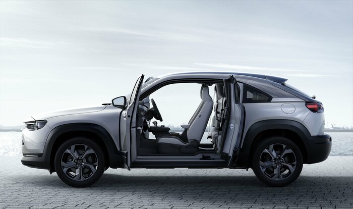 マツダ「MX-30 EV」は、観音開きのフリースタイルドアを採用しています。