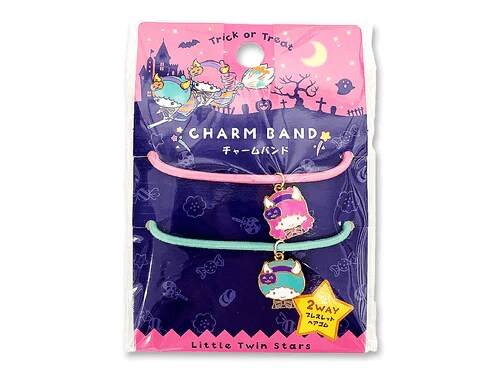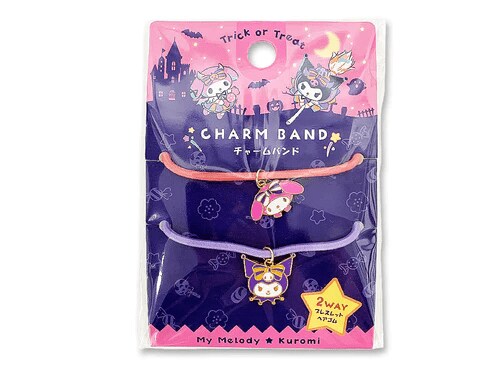 ハロウィンカラーのリボンをつけた「マイメロ」と「クロミ」のチャームバンドもあります。ヘアアクセサリーとして使用したり、ブレスレットのように使ったりすることもできます。