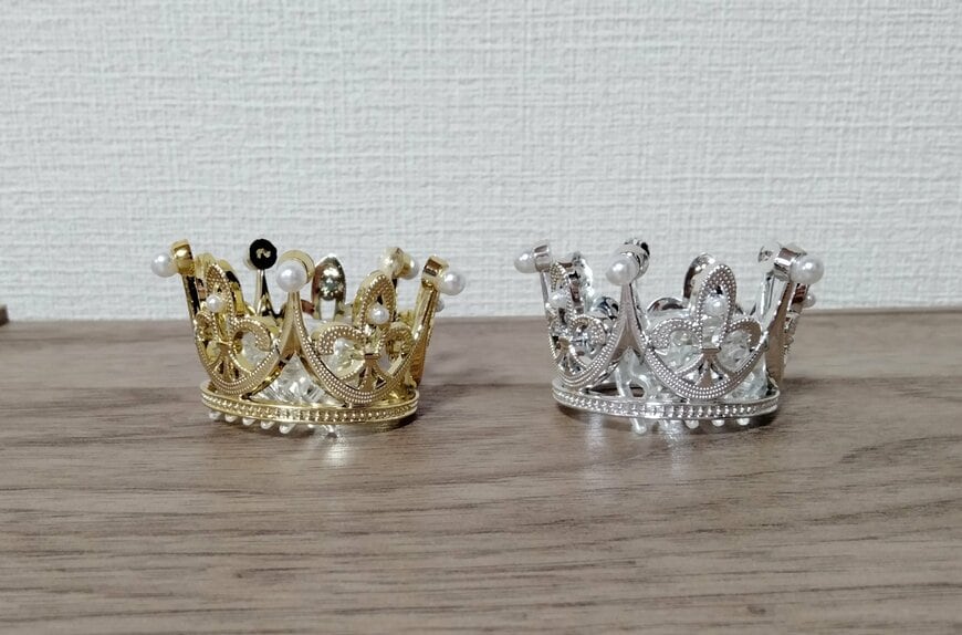 クラウンには、ゴールドとシルバーカラーの2種があるのですが、どちらもパール風のビーズがふんだんに使われていて豪華です。