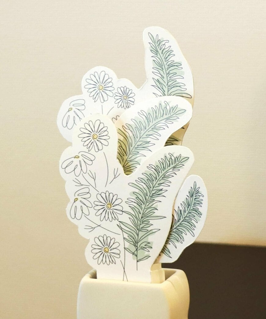 ペーパー加湿器のデザインは、写真のように3種類あります。チューリップ・ハーブ・コットンの3種です。