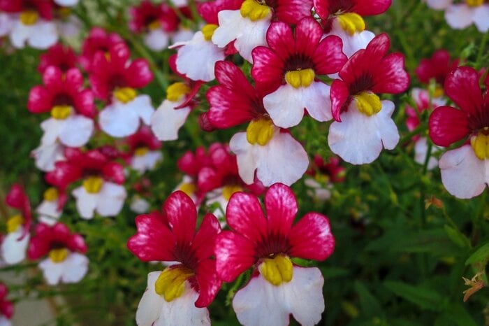 秋から春まで長い期間咲き続けるネメシア。1年草と多年草があり、耐暑性がやや弱いものの丈夫で育てやすい植物です。フリルのようにヒラヒラした小花が集まって咲く姿が可憐。