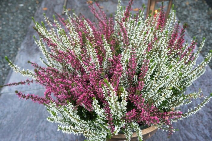 カルーナは冷涼な気候を好む常緑低木。それほど背丈は高くならないので、寄せ植えにも向いています。シュッと伸びた茎にぎっしり小花を付け、スタイリッシュな花姿が人気。