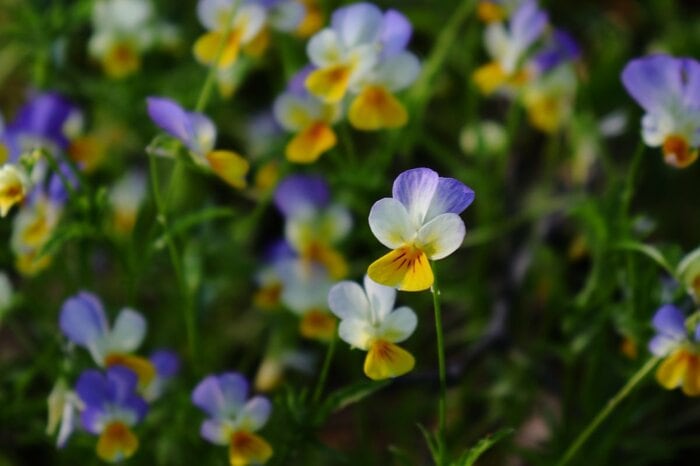 パンジーより小型で野性味のあるビオラ。春から冬の花壇に欠かせない定番花で、ナチュラルな咲き姿が寄せ植えにもピッタリ。可憐な花が主役を引き立てます。