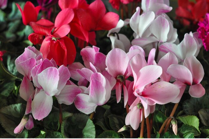 ガーデンシクラメンは寒さに強い性質なので、戸外での生育も可能。庭や玄関先に寄せ植えを飾ってみるのもステキですね。