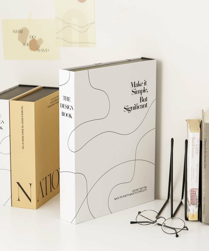 先ほどご紹介したBOOK型小物入れの大きいサイズです。写真のように背表紙部分が薄くて、スマートな雰囲気が出ていておしゃれです。