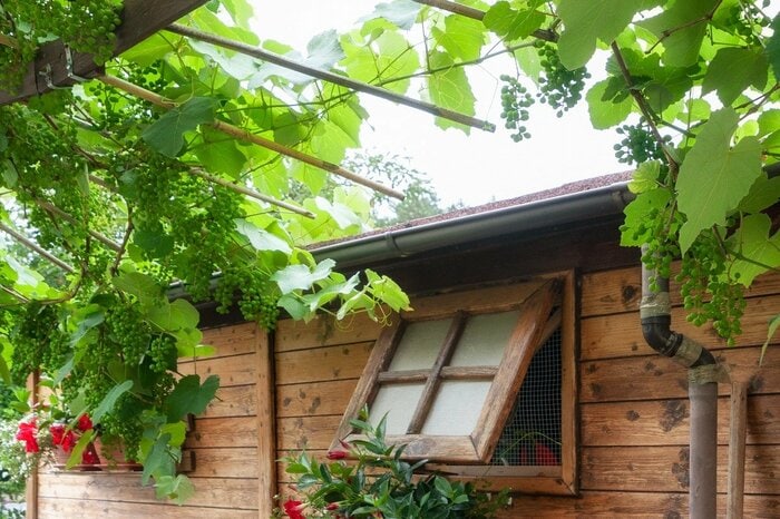 バラやクレマチスを這わせるのが定番ですが、最近はブドウも人気です。ブドウの葉は繊細で大人っぽい雰囲気。ギザギザの葉が特徴的で、オシャレな雰囲気を演出できますよ。