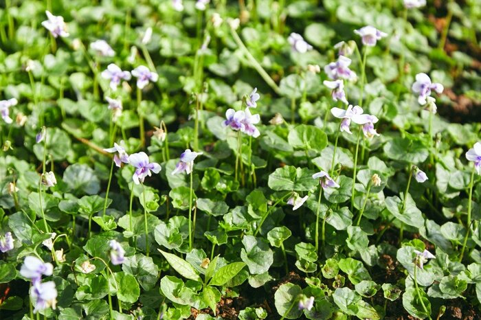 パンダスミレは半日陰でも育つ多年草。ランナーを伸ばし、ほふくして育つため、グランドカバーにぴったりです。玄関や庭の空いたスペースに植えてみるとよいでしょう。