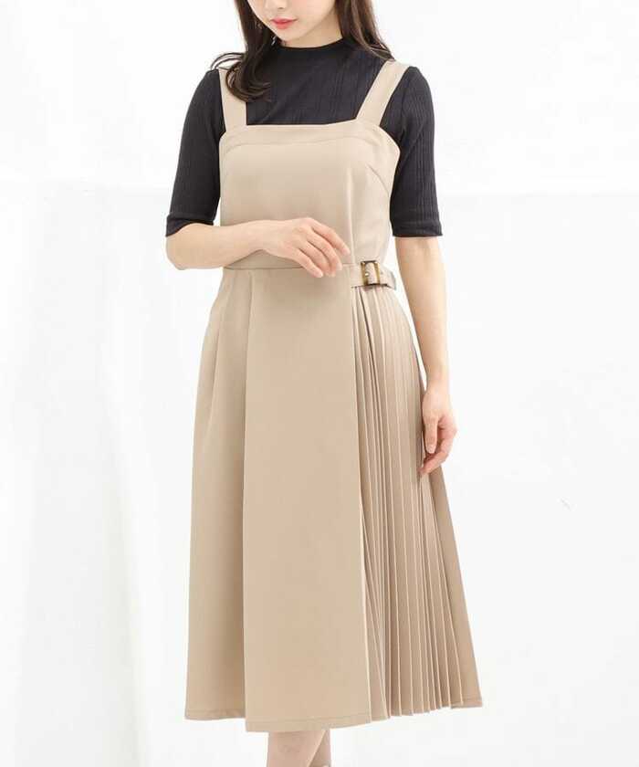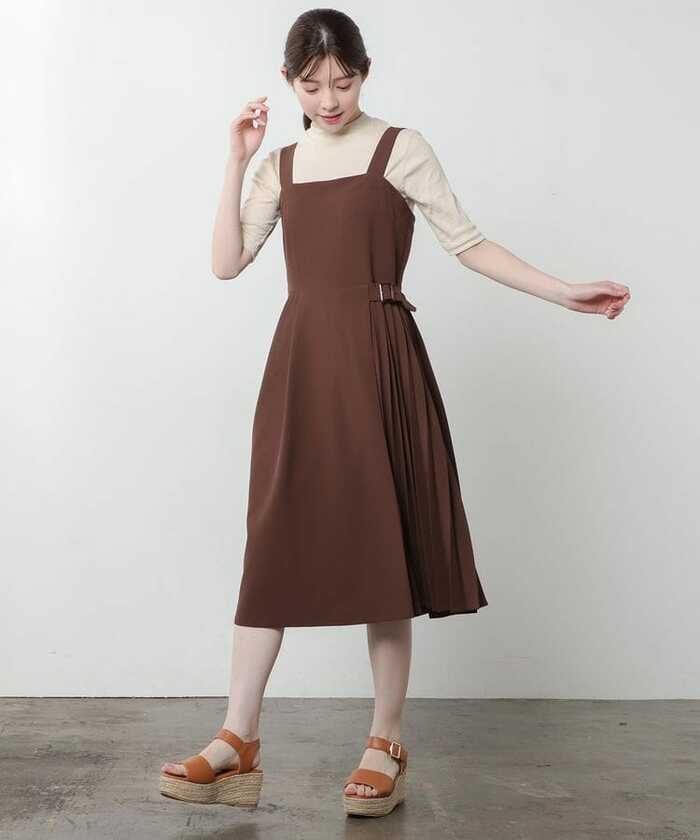 歩くたびに揺れるサイドのプリーツが特徴的な「プリーツ切替ジャンスカ」。メリハリがあるシルエットですが、ストレッチの効いた素材なので着心地が良いワンピースです。季節ごとにインナーを変えればオールシーズン着回せます。