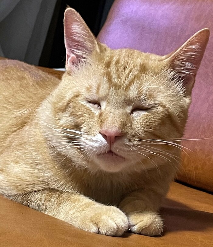瞳を閉じて、ふにゃっとした表情を見せるリチャードちゃん。口周りのモッフリ感も、これまた可愛らしい!幸せな夢でも見ているのでしょうか……?