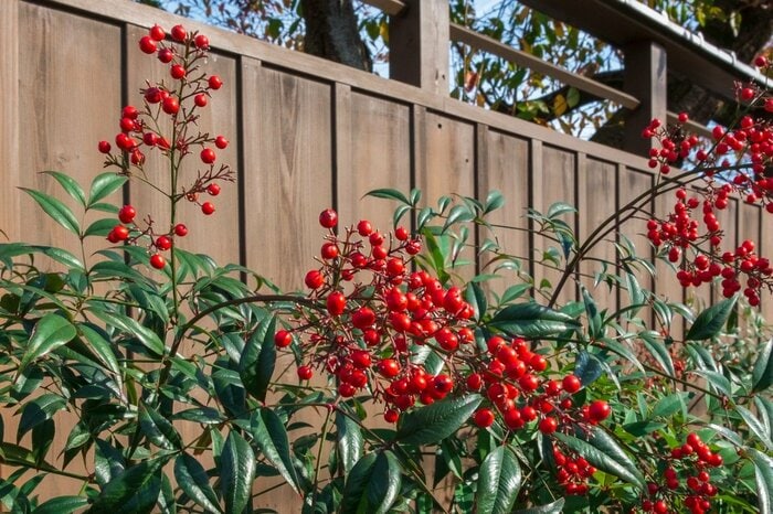 お正月の縁起物植物として出回るナンテン。植栽としても優秀で、濃い緑の葉と赤い実が特にオシャレです。白い実がなるシロナンテンも可愛らしい品種です。