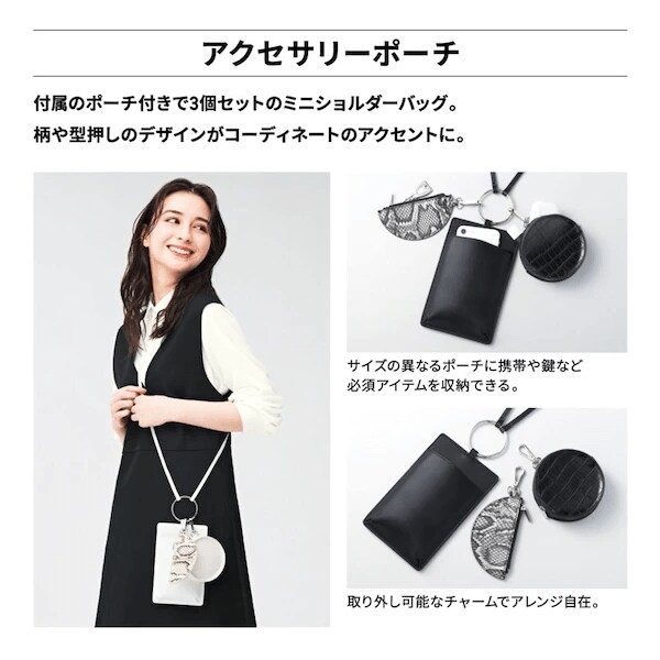 GUのアクセサリーポーチは、3つのポーチを活用して、必需品を小分けして持ち歩くことができます。