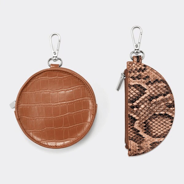 付属の円形と半月型のポーチには、鍵やリップクリーム、小銭などを入れることができます。こちらの2つは必要に応じて取り外すことも可能です。