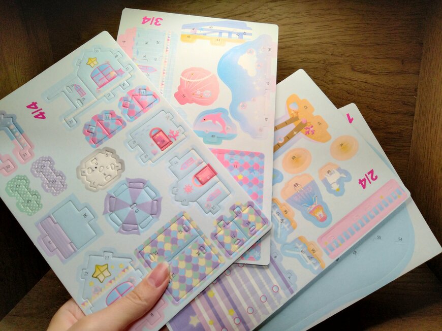 細かいパーツもあるペーパードールハウスです。したがって、組み立て応えがあり、筆者の場合は1つ完成させるのに40分ほどかかりました。
