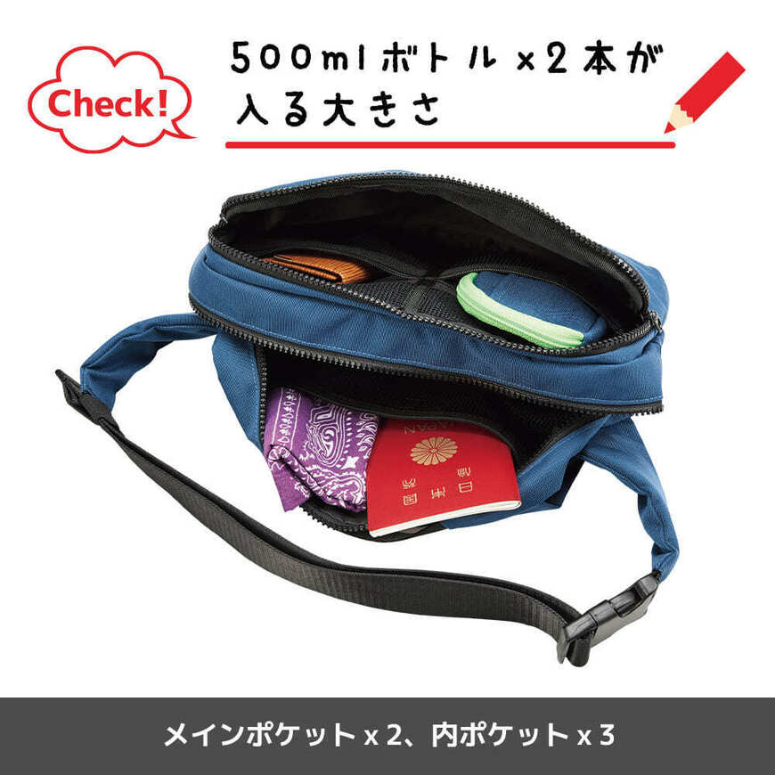 500 mlのペットボトルならば2本入るサイズ感となっています。長財布もきちんと収納できるサイズ感なのも嬉しいです。