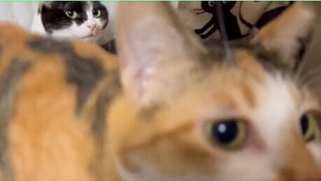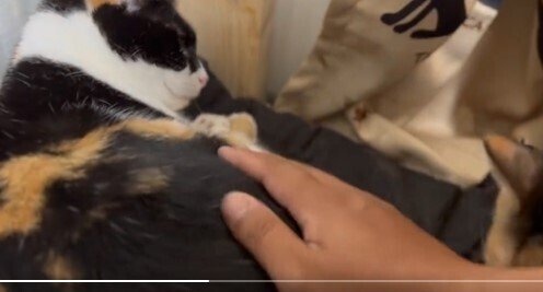 動画に写るのは、三毛猫の女の子「ちび太ちゃん」。動画の冒頭で、飼い主さんはゴッドマザーちゃん(愛称ゴッちゃん)を撫でようとしますが……?