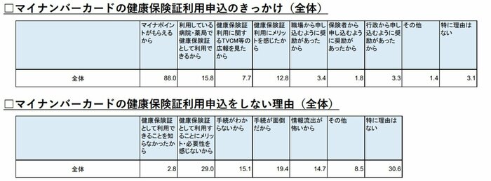 一方で、利用申込みをしない理由は、「健康保険証として利用することにメリット・必要性を感じないか