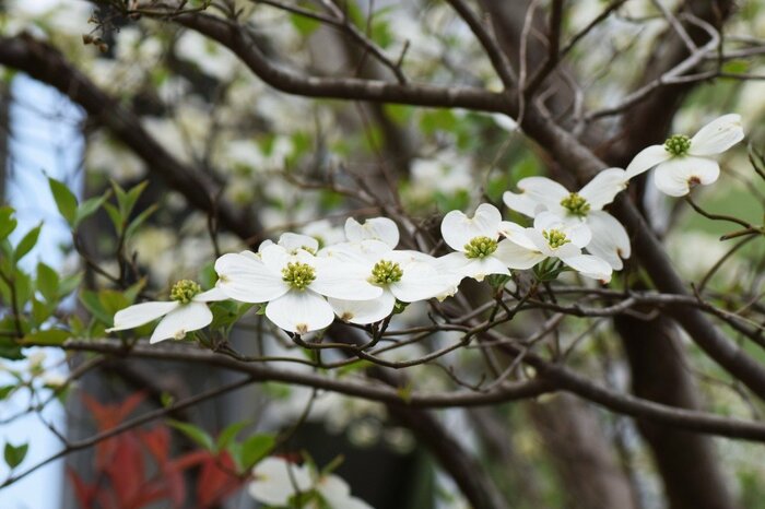 ハナミズキは春に開花し、夏には美しい青葉、秋には赤い実と紅葉が楽しめる落葉高木です。