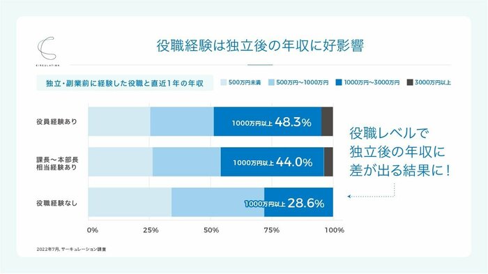 同調査では、現在は独立や副業の形で企業に直接支援を行うプロ人材に対して、「独立または副業開始を決意する前までに就いたことのある役職」を尋ねました。