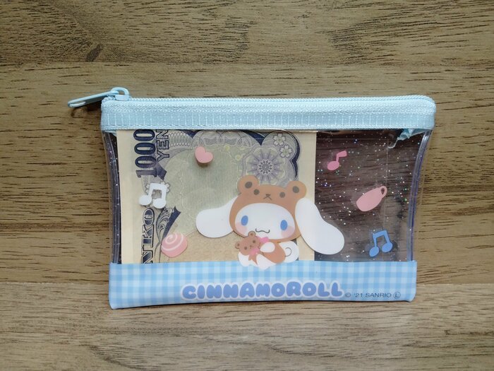 Sサイズのポーチながらしっかりと収納できます。下の写真のように、半分に折った千円札を収納できます。