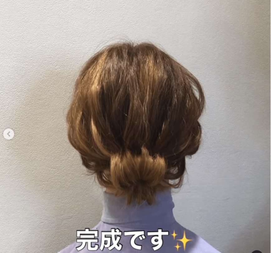 3. 最初に結んだ毛先の上半分を上向きに丸め、ピンでとめる