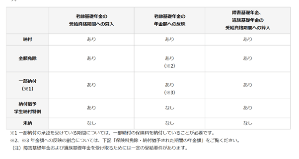 - 将来の年金額:保険料を納めた時に比べて2分の1(平成21年3月までの免除期間は3分の1)になる
