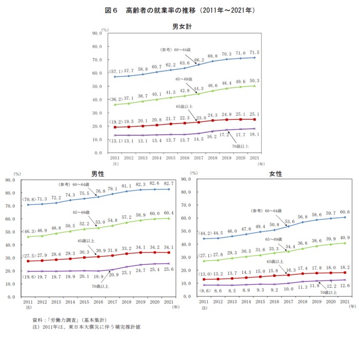 月3万円超の出費が増えるとなれば、60歳以降も働こうと考えるシニアは増えるでしょう。総務省によれば、現代でも60~64歳の71.5%が働いています。