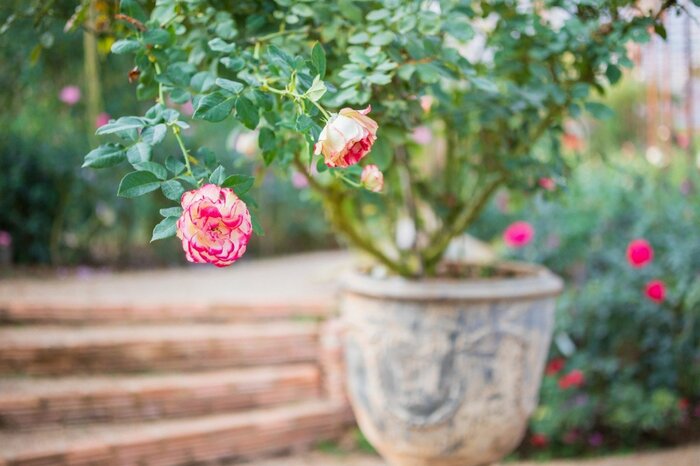 お気に入りのバラをオシャレな鉢に植えて、庭や玄関などで育ててみませんか。