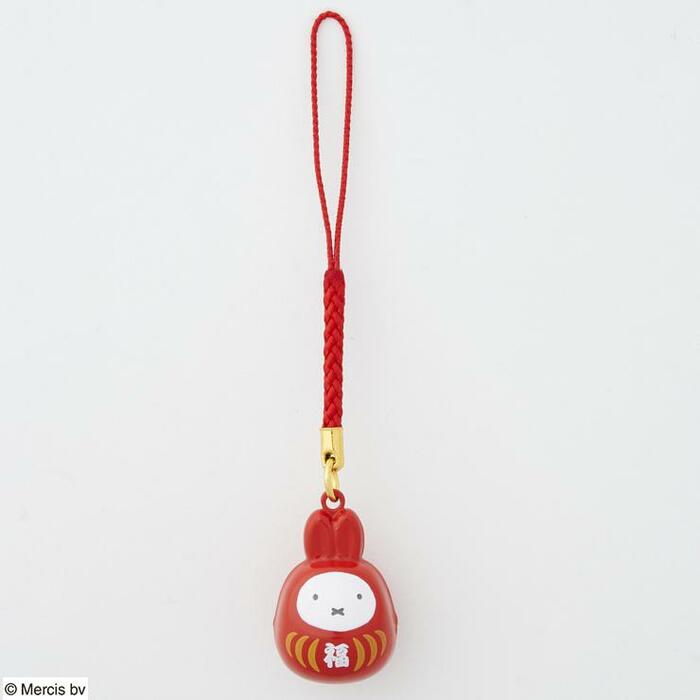 ミッフィーがキュートなだるま姿になりました。お耳がとってもキュートなミッフィー福だるま。使い勝手のいい根付け鈴は、揺らすとちりんちりんと可愛らしい音がします。縁起の良いモチーフなので、プレゼントにもぴったりですね。