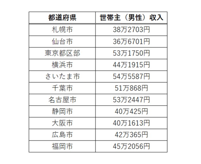 【主要な県庁所在地別】結婚後の男性の平均月収はいくらか