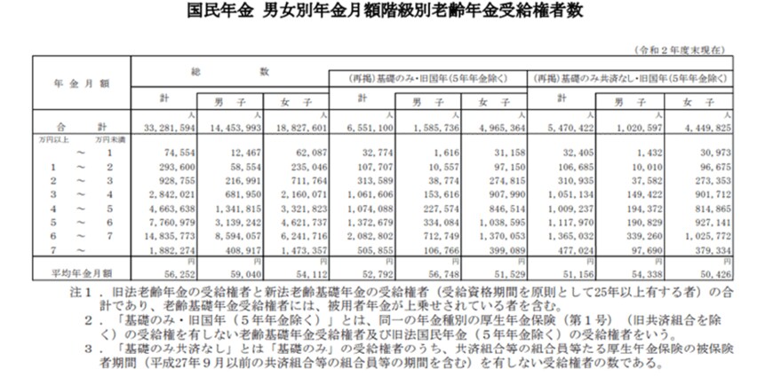 まずは厚生労働省が公表する「令和2年度 厚生年金保険・国民年金事業の概況」より、国民年金の平均額と分布を確認しましょう。