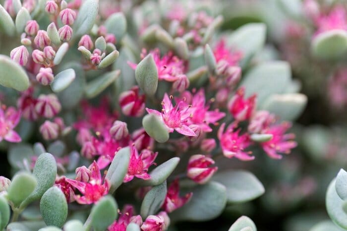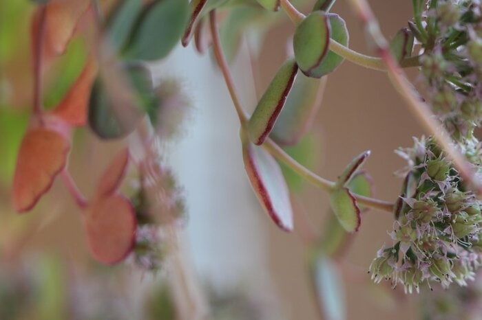 セダムの一種で秋に咲くピンクの小花が愛らしいミセバヤ。日本でも古くからなじみ深く、「君に見せばや(あなたに見せたい)」と思わせるほどカワイイ花、ということから名付けられました。