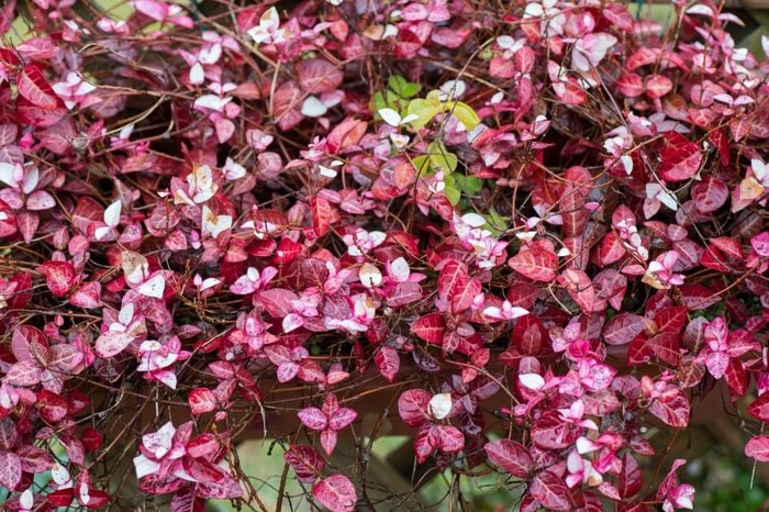 ハツユキカズラは雪が積もったようにうっすらと白くなる葉が特徴。新芽はほんのりピンク色を帯び、まるで花が咲いたかのように見えます。