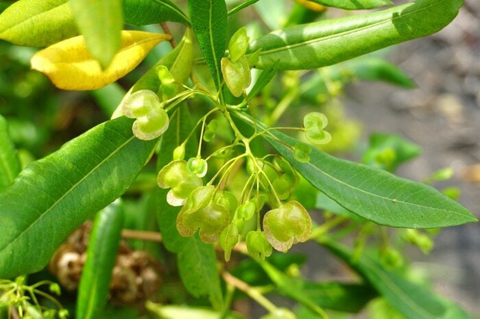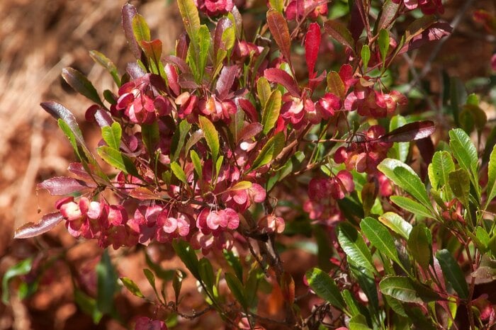 オージープランツとして近年注目を集めているドドナエア。細長い葉がピンと立ち上がる樹形がスタイリッシュ。とくにワインレッドに紅葉する「ドドナエア・プルプレア」が人気です。