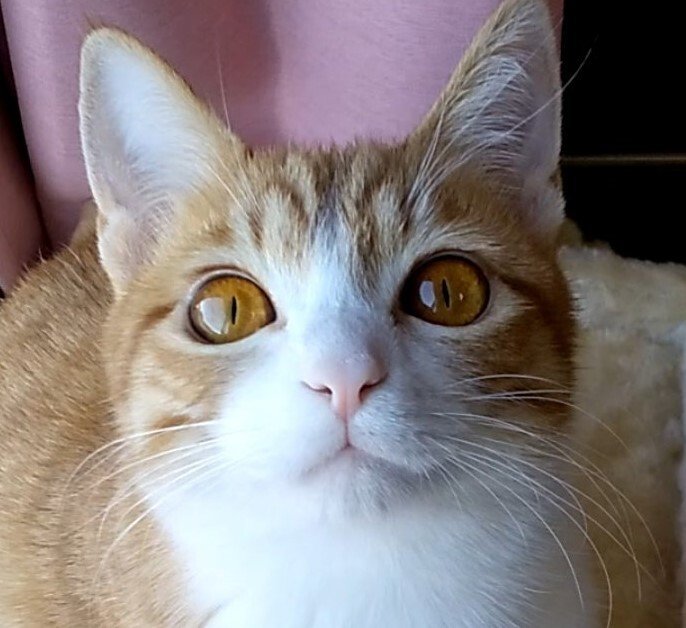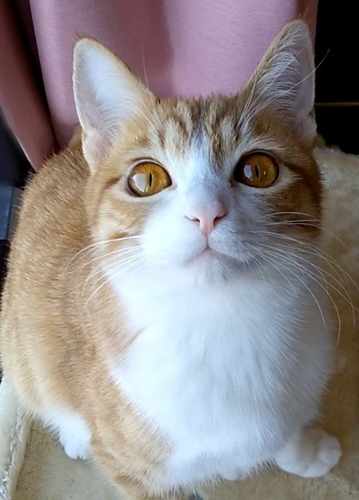 写っていたのは、とってもまぶしいニコニコ笑顔を見せる1匹の猫ちゃん。名前は「プリンちゃん」で、推定1歳の女の子です。