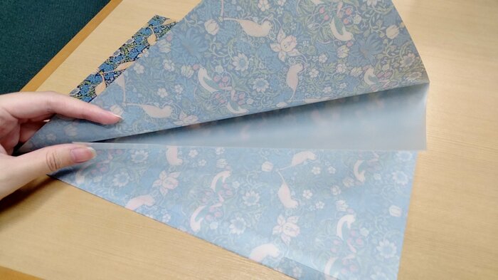 通常のクリアファイルに比べて、やや薄くて柔らかい質感です。触り心地も、つるつるとした感触ではなく、しっとりとしていて高級感があります。