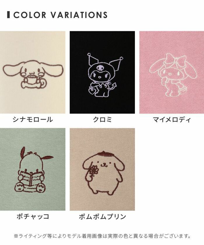シナモロールはホワイト、クロミはブラック、マイメロディはピンク、ポチャッコはグリーン、ポムポムプリンはライトブラウン……というふうに、それぞれのキャラクターらしいカラーとなっています。