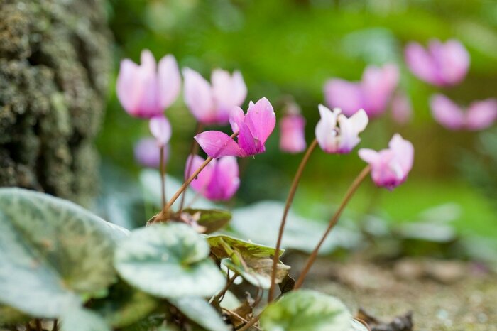 品種改良されていないシクラメンを「原種シクラメン」と呼びます。やや小さめのサイズが多く、クリスマスローズの株元に植えるとナチュラルな雰囲気に。