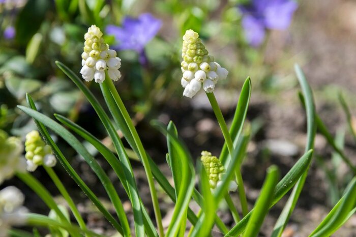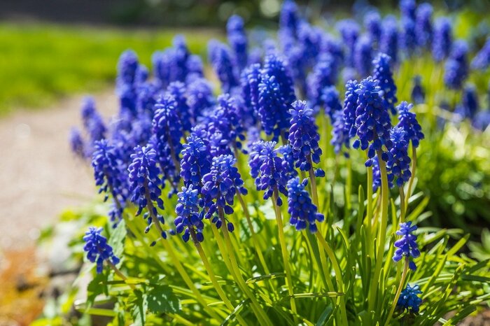 可愛らしいブドウのような房状の花をつけるムスカリ。植えっぱなしでも翌年花を咲かせます。