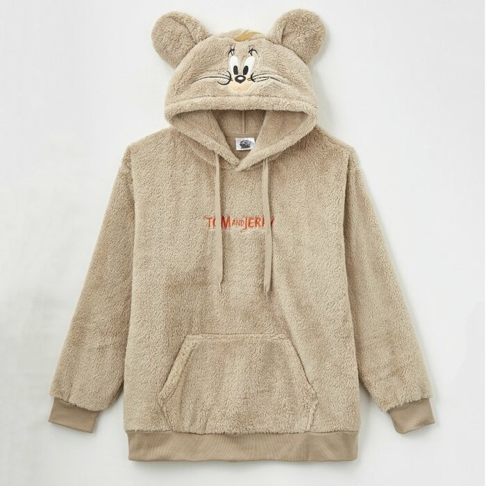 トム&ジェリーのなりきりプルパーカーです。もこもこのボア素材であたたかく、メンズでもレディースでも可愛く着こなせる商品となっています。着ているだけで癒されそうなフォルムが特徴。