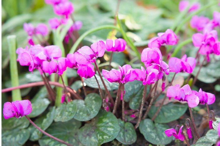 室内向きのシクラメンを外で育てられるように改良したガーデンシクラメン。多年草なので、上手に夏越しができれば翌年も花を咲かせます。