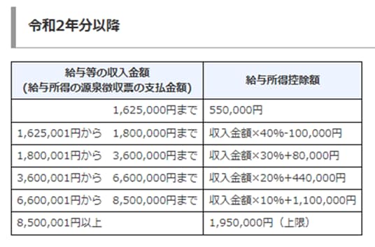 住民税非課税世帯かどうかを判断する際の「合計所得金額」を計算するときは、会社員などの給与所得であれば、「合計所得金額=年収-給与所得控除」で計算できます。給与所得控除は、給与収入に応じて次のように決まっています。