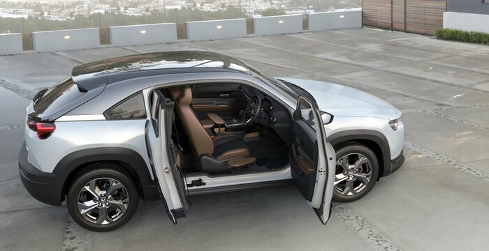 国際福祉機器展 H.C.R.2022に出品されたMX-30 SeDVの詳細な装備は、アクセルリングとレバーブレーキ、乗降用補助シート、オートボックス(株式会社 ミクニ ライフ&オート製)、ストラップ式リアドアクローズアシストなどです。